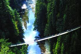 The Capilano Suspension Bridge adalah jembatan gantung sederhana menyeberangi Sungai Capilano di Distrik Vancouver Utara , British Columbia , Kanada . Jembatan saat ini adalah 140 meter ( 460 kaki) .panjang dan 70 meter ( 230 kaki) di atas sungai . Ini adalah bagian dari fasilitas swasta , dengan biaya masuk , dan menarik lebih dari 800.000 pengunjung per tahun .Jembatan ini awalnya dibangun pada tahun 1889 oleh George Hibah Mackay , seorang insinyur sipil dan taman komisaris Skotlandia untuk Vancouver . Ini pada awalnya terbuat dari tali rami dengan dek dari papan cedar , dan digantikan dengan jembatan kabel kawat pada tahun 1903 . Pada tahun 1910 Edward Mahon membeli Capilano Suspension Bridge . " Mac " MacEachran membeli Bridge dari Mahon pada tahun 1935 dan mengundang pribumi lokal untuk menempatkan tiang totem mereka di taman , menambahkan tema asli . Pada tahun 1945 , ia menjual jembatan ke Henri Aubeneau .